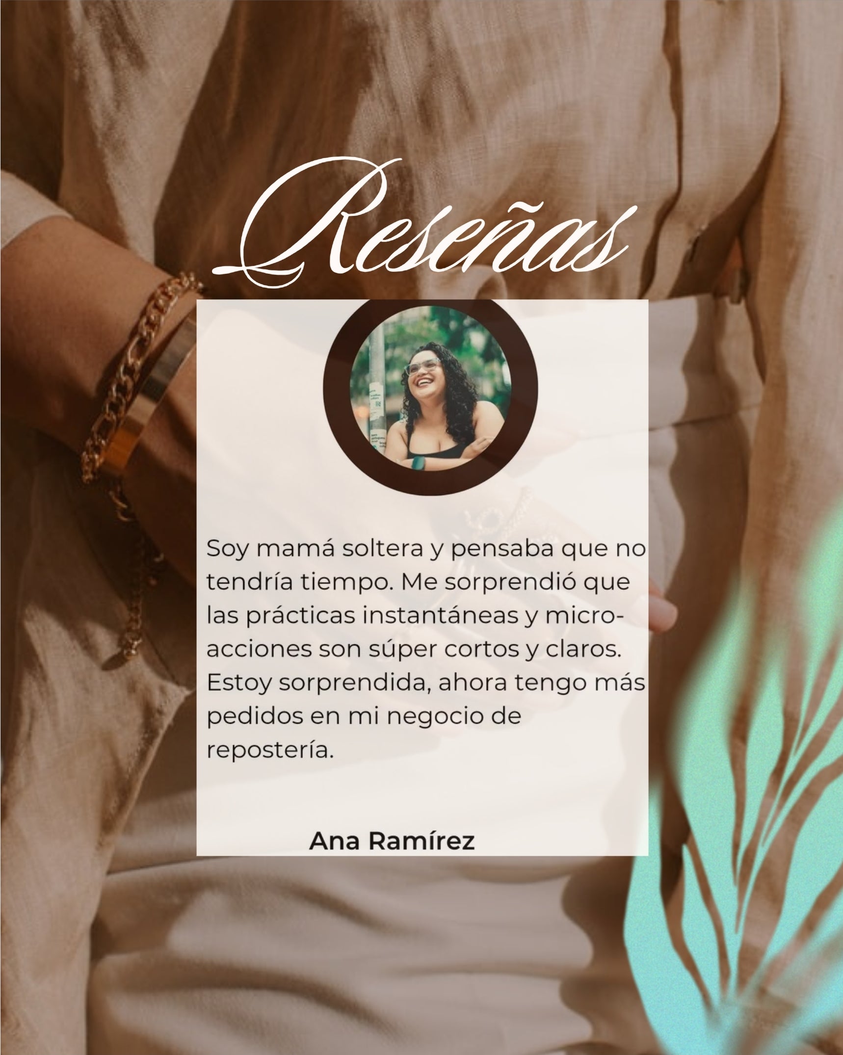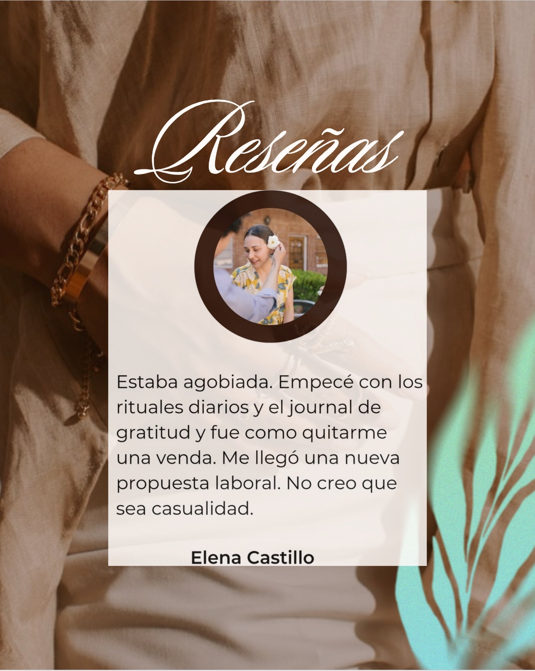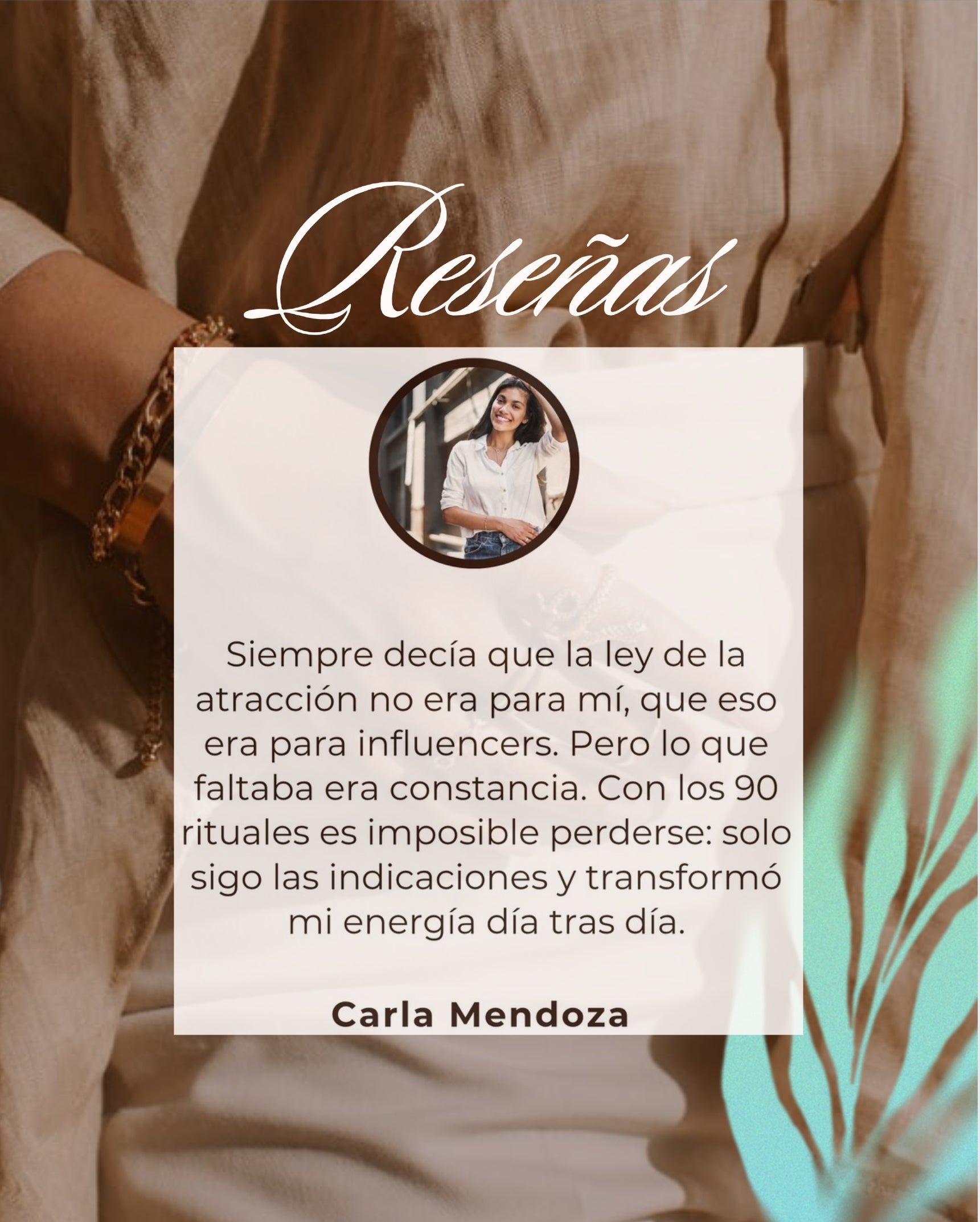 "Entendí que la manifestación viene desde el cambio. Mi mentalidad, mi energía y mis resultados mejoraron combinando los dos ebooks simultáneamente. Lo recomiendo a todas mis amigas."