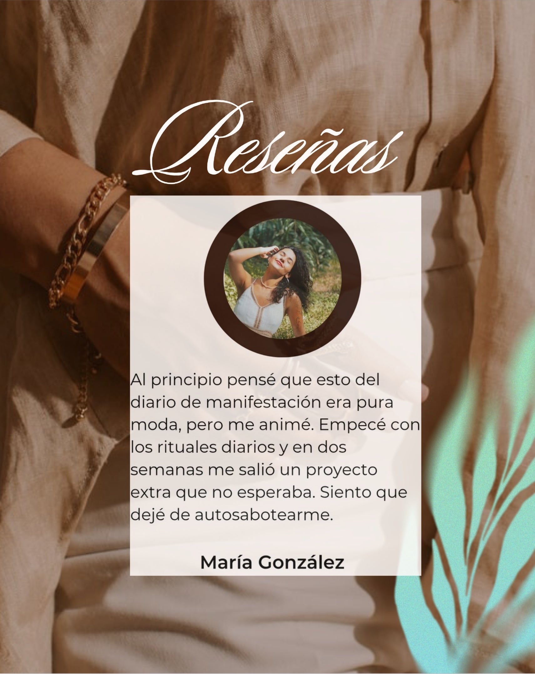 "Nunca había sido constante con la manifestación. Este diario me hizo volver cada día y realmente SENTIR el cambio. A los 30 días ya noté más oportunidades y claridad."